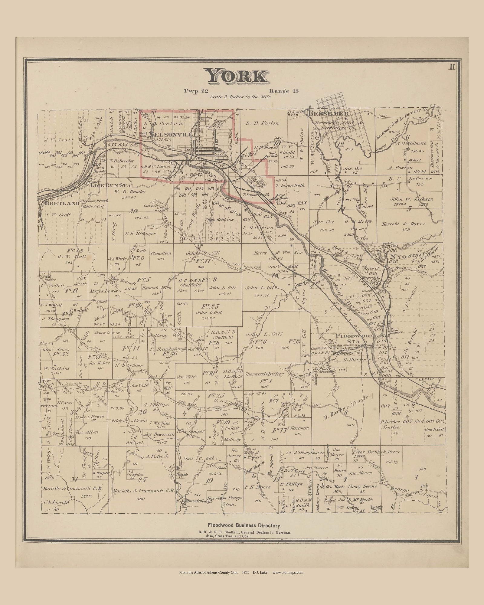 York 1875 Old Town Map Reprint Athens County Ohio Etsy